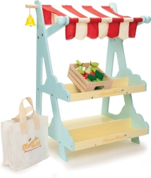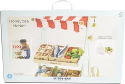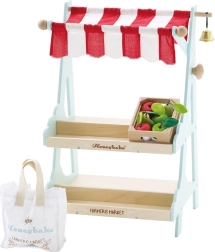 Le Toy Van Verkaufsstand Honeybee ist ein beliebtes Produkt der Marke Le Toy Van, bekannt für ihr preisgekröntes Design und Qualität. Dieser Verkaufsstand ist mit einem rot-weißen Baldachin, einer Glocke und Holzboxen mit Obst ausgestattet. Er inspiriert Kinder zu Rollenspielen, die ihre sozialen Fähigkeiten und Kreativität fördern.