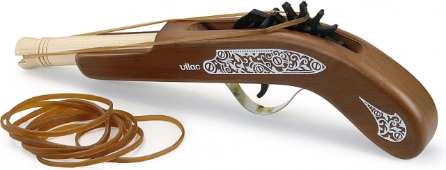 Holz-Piratenpistole von Vilac ist das ideale Spielzeug für kleine Piratenabenteuer-Enthusiasten. Sie ermöglicht es Kindern, Zielsicherheit mit sicheren Gummibändern zu üben, die im Lieferumfang enthalten sind.
