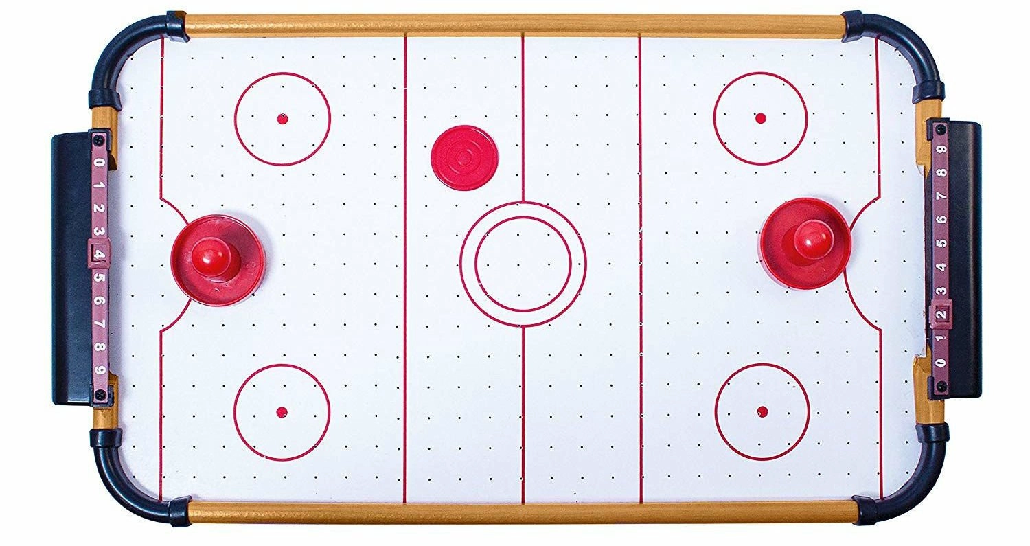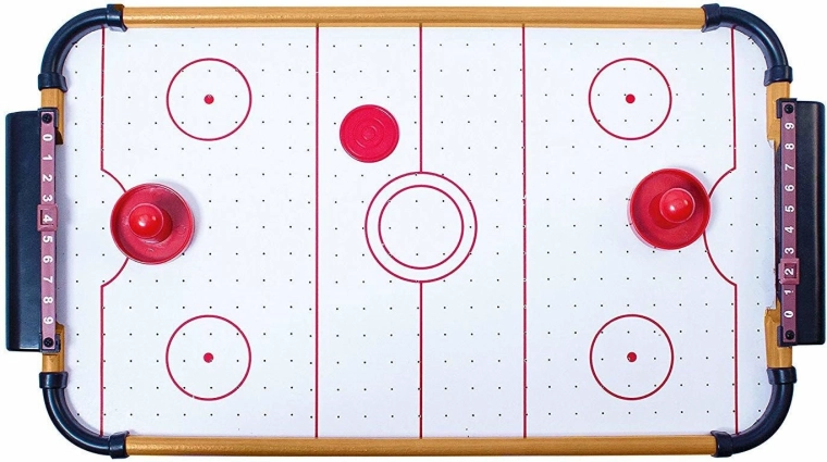 Der Tisch passt auf die meisten Tische und bietet ein vollwertiges Airhockey-Erlebnis ohne großen Platzbedarf.