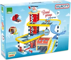 Entdecken Sie den Spielspaß mit der Holzgarage VILAC Vilacity! Diese große mehrstöckige Garage bietet einen funktionierenden Aufzug, Schiebetüren, eine Parkschranke, eine Zapfsäule und Waschbürsten. Inklusive 2 Autos und Hubschrauber, volle Kompatibilität mit der VILACITY-Kollektion und umweltfreundlicher Herstellung.