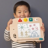 Entdecken Sie kreativen Spaß mit der magnetischen Holz-Zeichentafel von Petit Collage: große, mehrfarbige Zeichenfläche, Stift am Band und 4 magnetische Stempel für müheloses Gestalten. Eine praktische Leiste zum schnellen Löschen und die robuste Holzkonstruktion mit abgerundeten Kanten gewährleisten eine sichere Nutzung durch Kinder ab 3 Jahren.