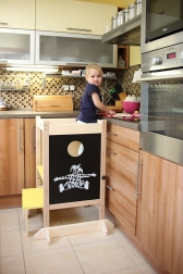 Dieser robuste Lernturm ist ein praktischer Helfer für jeden Haushalt mit kleinen Kindern. Er bringt Kinder auf die Höhe der Arbeitsfläche, damit sie besser sehen, was Sie tun, und sich sicher am Kochen, Backen oder Basteln beteiligen können. Die strapazierfähige Holzkonstruktion aus Buche und Fichte sorgt für Stabilität und Langlebigkeit.