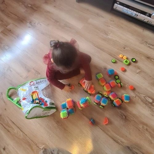 Dieses farbenfrohe Konstruktionsset mit Igelstruktur ermöglicht Kindern, unendlich viele Bauwerke zu erschaffen – von Häuschen und Fahrzeugen bis zu fantasievollen Burgen. Die Teile haben abgerundete Enden für sicheres Spielen ab 3 Jahren und lassen sich leicht verbinden und lösen.