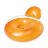 Dieser aufblasbare Ring mit Rückenlehne in Orange ist ideal für bequemes Liegen auf dem Wasser.