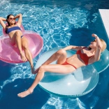 Genießen Sie entspannte Momente mit unseren aufblasbaren Ringen mit Rückenlehne, erhältlich in Orange und Türkis.