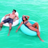 Der aufblasbare Ring in Türkis bietet Stabilität und Komfort während der Entspannung auf dem Wasser.