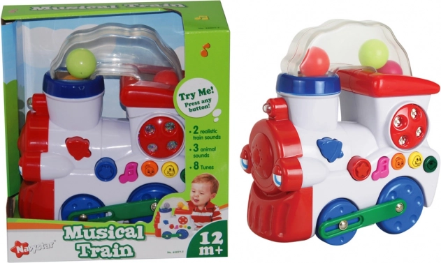 Diese verspielte musikalische Lok bietet Kindern viele Anreize und Unterhaltung. Die einfache Bedienung über die sternförmige Taste startet die Fahrt, während aus dem Schornstein Ballons fliegen. Realistische Zuggeräusche, bunte Lichter und vielfältige Melodien fördern auf natürliche Weise Gehör, Sehsinn und Motorik.