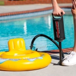 Die praktische und robuste Pumpe INTEX Double Quick II ist für effizientes, müheloses Aufpumpen konzipiert. Beim Auf- und Abwärtshub drückt sie Luft in den aufblasbaren Gegenstand und verkürzt so die zum Aufpumpen benötigte Zeit deutlich. Dank der Kompatibilität mit den meisten Aufblasventilen ist sie ideal für Luftmatratzen, Poolspielzeuge, Boote und Schwimmringe.