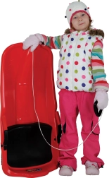 Leichte und strapazierfähige Kunststoffschlitten SuperJet bieten eine sichere und bequeme Fahrt im Schnee. Dank der Seitenbremsen behalten Sie Geschwindigkeit und Richtung unter Kontrolle; erhöhte Seitenwangen und der geformte Sitzbereich erhöhen Stabilität und Komfort. Die Zugleine erleichtert das Handling und das Ziehen bergauf.
