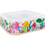 Der vom Unterwasserreich inspirierte aufblasbare Pool ist die ideale Ergänzung für warme Sommertage. Er besteht aus hochwertigem Vinyl mit einer Stärke von 0,28 mm, was seine Widerstandsfähigkeit und lange Lebensdauer gewährleistet. Dank des im Lieferumfang enthaltenen Reparaturflickens ist er auch für unerwartete Situationen gewappnet.