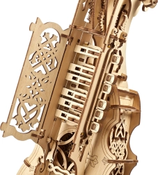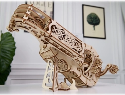 292 präzise lasergeschnittene Teile aus hochwertigem Sperrholz fügen sich ohne Kleber zusammen. Zierende Ornamente und sichtbare Getriebe machen sie zu einer faszinierenden Dekoration.