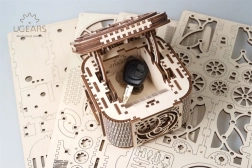 Die elegante UGEARS Schmuckschatulle aus Holz ist ein mechanisches 3D-Puzzle, das ohne Klebstoff zusammengebaut wird und nach der Montage tatsächlich funktioniert. Sie bietet ein einzigartiges Öffnungssystem, hochwertige Verarbeitung und sanfte mechanische Bewegung dank durchdachter Zahnräder. Ideal für Technik- und Designliebhaber, fördert Motorik und Vorstellungskraft und dient als origineller Aufbewahrungsort für Wertsachen.
