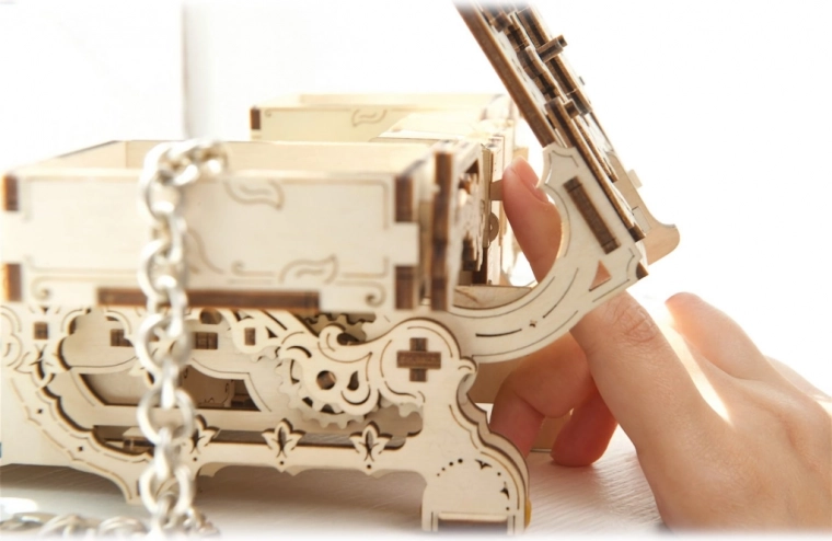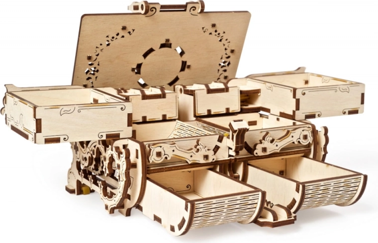 Diese originelle Schmuckschatulle im antiken Stil verbindet präzises Laser-Schneiden mit raffinierter Mechanik. Nach dem Zusammenbau erhalten Sie eine funktionale Box mit Zahnrädern und beweglichen Teilen, die auf den ersten Blick begeistert und Ihre Wertsachen sicher verwahrt. Das Bauerlebnis ist unterhaltsam und lehrreich – ganz ohne Klebstoff, nur mit passgenauen Teilen aus hochwertigem Sperrholz.
