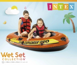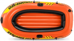 Praktisches aufblasbares Boot für zwei Personen. Das Boot hat einen aufblasbaren Boden, ein Halte-Seil rund um den gesamten Rand, stabile Griffe, einen Griff am Bug, Paddelhalterungen sowie drei Luftkammern mit Doppelventil. Also, ab an Bord.