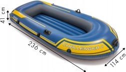 Das leichte und robuste aufblasbare Boot INTEX Challenger 2 ist ideal für Freizeitausflüge auf ruhigen Gewässern. Es bietet Platz für zwei Personen, eine Tragfähigkeit von 170 kg, 3 Luftkammern für Sicherheit und einen weichen aufblasbaren Boden für Komfort. Im Lieferumfang enthalten sind 2 leichte Paddel, eine Handkolbenpumpe, Paddelhalter, ein Halte-/Abschleppseil und ein Reparaturset.