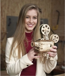 Bauen Sie Ihren eigenen mechanischen Filmprojektor aus Naturholz, der tatsächlich einen Schwarzweißfilm projiziert. Das Modell ROKR bietet Handkurbelantrieb, laserpräzise ausgeschnittene Teile und Montage ohne Klebstoff. Eine großartige lehrreiche Dekoration, die technisches Denken fördert und Liebhaber von Retro-Design und Kinematografie begeistert.