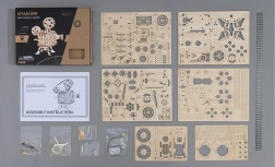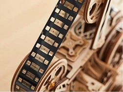Das Set enthält alles Nötige: vorgeschnittene Sperrholzteile, Stahlwellen, Diode, Filmstreifen sowie eine illustrierte Anleitung mit QR-Code zu einem Montagevideo. Das Modell ist ein großartiges Geschenk und zugleich eine Design-Dekoration für Arbeits- oder Wohnzimmer.