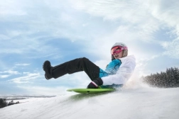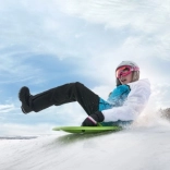 Der widerstandsfähige Kunststoff trotzt winterlichen Bedingungen und bleibt gleichzeitig leicht für den einfachen Transport bergauf. Der Teller ist für Kinder ab 3 Jahren und Erwachsene geeignet – so hat die ganze Familie Spaß.