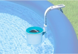 Der Skimmer INTEX 28000 reinigt zuverlässig die Wasseroberfläche und hält das Wasser klar. Durch das Einlegen von Chemietabletten in den Korb sorgt er für eine sichere und gleichmäßige Dosierung. Der verstellbare Arm passt sich leicht dem Beckenrand an und der Korb mit Einsatz fängt Verunreinigungen effektiv auf.