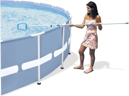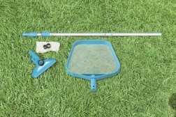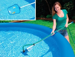 Das komplette INTEX-Reinigungsset ist die ideale Lösung für heimische Pools bis zu einem Durchmesser von 488 cm. Der an den Gartenschlauch angeschlossene Wassersauger erzeugt Druck und sammelt Sand, Laub und Ablagerungen vom Boden effektiv im beiliegenden Beutel, während das feine Netz schwimmende Verunreinigungen von der Oberfläche mühelos entfernt.