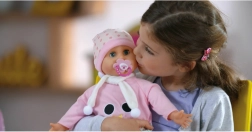 Die schöne Puppe Bambolina Jasmine kann bis zu 50 tschechische Wörter sprechen. Wenn man Jasminas Bäuchlein drückt, beginnt sie zu sprechen. Komm, spiel mit ihr, sie sagt dir zum Beispiel: „Mama, ich hab dich lieb.“
