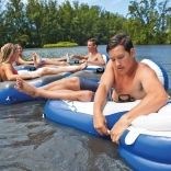 Hergestellt aus vorgetestetem, robustem Vinyl. Ungefähre Größe 1,30 m x 1,26 m. Kein Spielzeug, für Freizeitsport gedacht. Stabile Griffe. Einfach mit weiteren River Run Produkten verbindbar. Zwei Luftkammern, Getränkehalter. Reparaturflicken beigefügt.