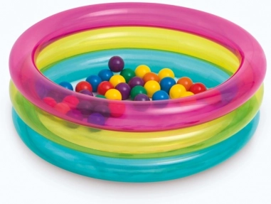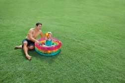 Der Pool kann als Trockenbecken mit Bällen verwendet oder mit einer kleinen Menge Wasser für Erfrischung im Sommer befüllt werden. Die leichte, kompakte Ausführung aus PVC ermöglicht schnelles Aufpumpen, Tragen und Verstauen.