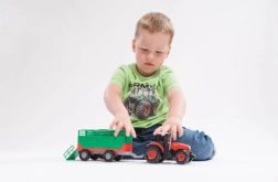 Entdecken Sie den realistischen Zetor-Traktor mit Anhänger mit einer Länge von 36 cm, der jeden kleinen Landwirt begeistert. Das Spielzeug bietet einen Schwungantrieb für sanftes Fahren, Licht- und Soundeffekte sowie einen abnehmbaren Anhänger für noch mehr Spielspaß. Die Batterien 3× AG13 sind im Lieferumfang enthalten, sodass der Spaß sofort beginnen kann.