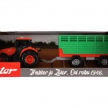 Dieser detailliert gestaltete Kunststofftraktor Zetor mit Kippanhänger ist eine großartige Wahl für Kinder ab 3 Jahren. Dank des Schwungantriebs fährt er leicht los, Tasten aktivieren realistische Motorgeräusche und Lichter für ein noch authentischeres Spiel. Der abnehmbare Anhänger ermöglicht den Transport von Heu, Tieren oder anderen Ladungen und fördert die kindliche Fantasie bei Bauernhofszenarien.