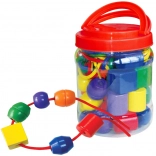 Sie können auf Schnüre, die im Set enthalten sind, aufgefädelt oder nach Formen und Farben sortiert werden.