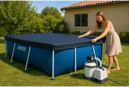 Die Abdeckung ist für rechteckige INTEX-Rahmenpools 300 × 200 cm bestimmt und schmiegt sich für maximale Wirkung rundum an.