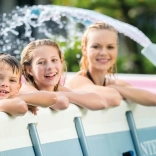 Die Montage gelingt in einer Minute: Befestigen Sie den Brunnen einfach an der Poolwand ohne Bohren und ohne Werkzeug. Die universelle Halterung und der beiliegende Adapter ermöglichen den einfachen Anschluss an gängige Schläuche 32/38 mm sowie an Filteranlagen mit einem Durchfluss von 3 785–12 112 l/h. Das Produkt erfüllt europäische Normen für Sicherheit.
