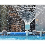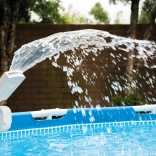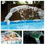 Genießen Sie abendliches Baden mit einem zauberhaften Lichteffekt. Der INTEX Brunnen erzeugt einen dekorativen Wasserstrahl mit LED-Hintergrundbeleuchtung in vier Farben (weiß, rot, blau, grün), verbessert die Wasserzirkulation und -oxygenierung und unterstützt so die Wirkung der Poolchemie. Dank des hydroelektrischen Generators benötigt er keine externe Stromversorgung – das Licht schaltet sich bei Wasserfluss automatisch ein.