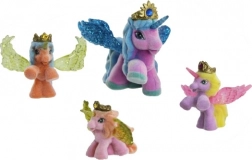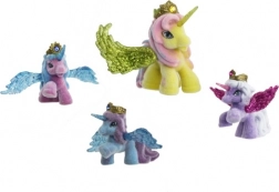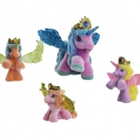 Jedes Pferdchen hat glitzernde Flügel, ein magisches Horn und eine goldene Krone mit farbigem „Kristall“ – ideal für märchenhafte Rollenspiele.