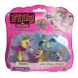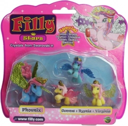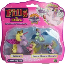 Filly Stars bringen eine Portion Fantasie in jedes Kinderzimmer. Das 1+3-Set enthält ein größeres Pferdchen und drei kleine Fohlen in leuchtenden Farben. Dank der glitzernden Flügel, goldenen Kronen und magischen Hörner lieben Kinder märchenhafte Geschichten und kreatives Spielen.