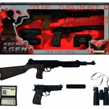 Das Polizei-Set Top Secret enthält eine metallene Polizeipistole, einen Schalldämpfer, ein Fernglas, einen Polizeiausweis sowie ein Polizeigewehr. Alles ist aus Metall gefertigt. Alles ist für Zündplättchen – 8 Schuss. Hergestellt in Spanien.