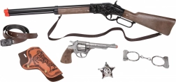 Cowboy-Set – Gewehr, Revolver, Handschellen und Sheriffstern für Knallkapseln