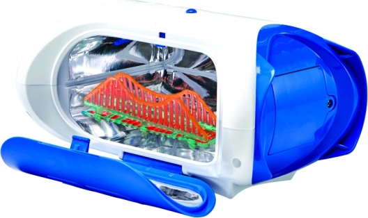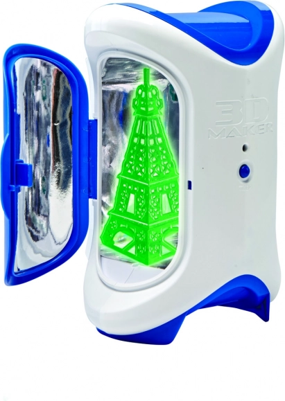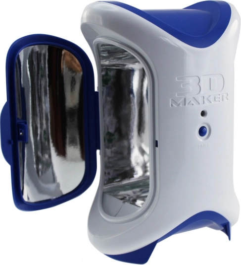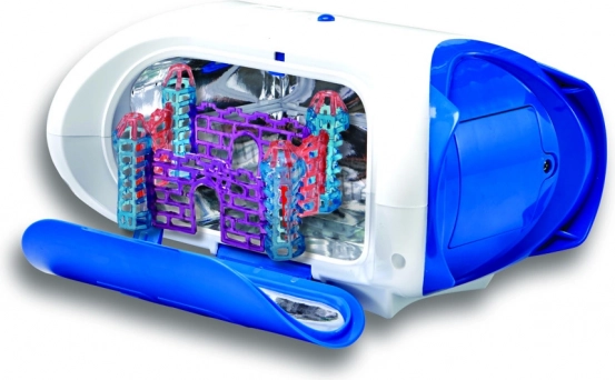 Das 3D Maker Gerät nutzt UV-Licht in einer sicheren Kammer mit Sichtfenster, sodass Kinder den Herstellungsprozess gefahrlos beobachten können.