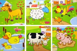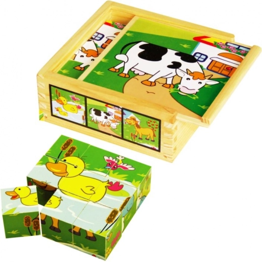 - 9 Würfel zum Zusammensetzen erster Bilder mit niedlichen Haustieren.