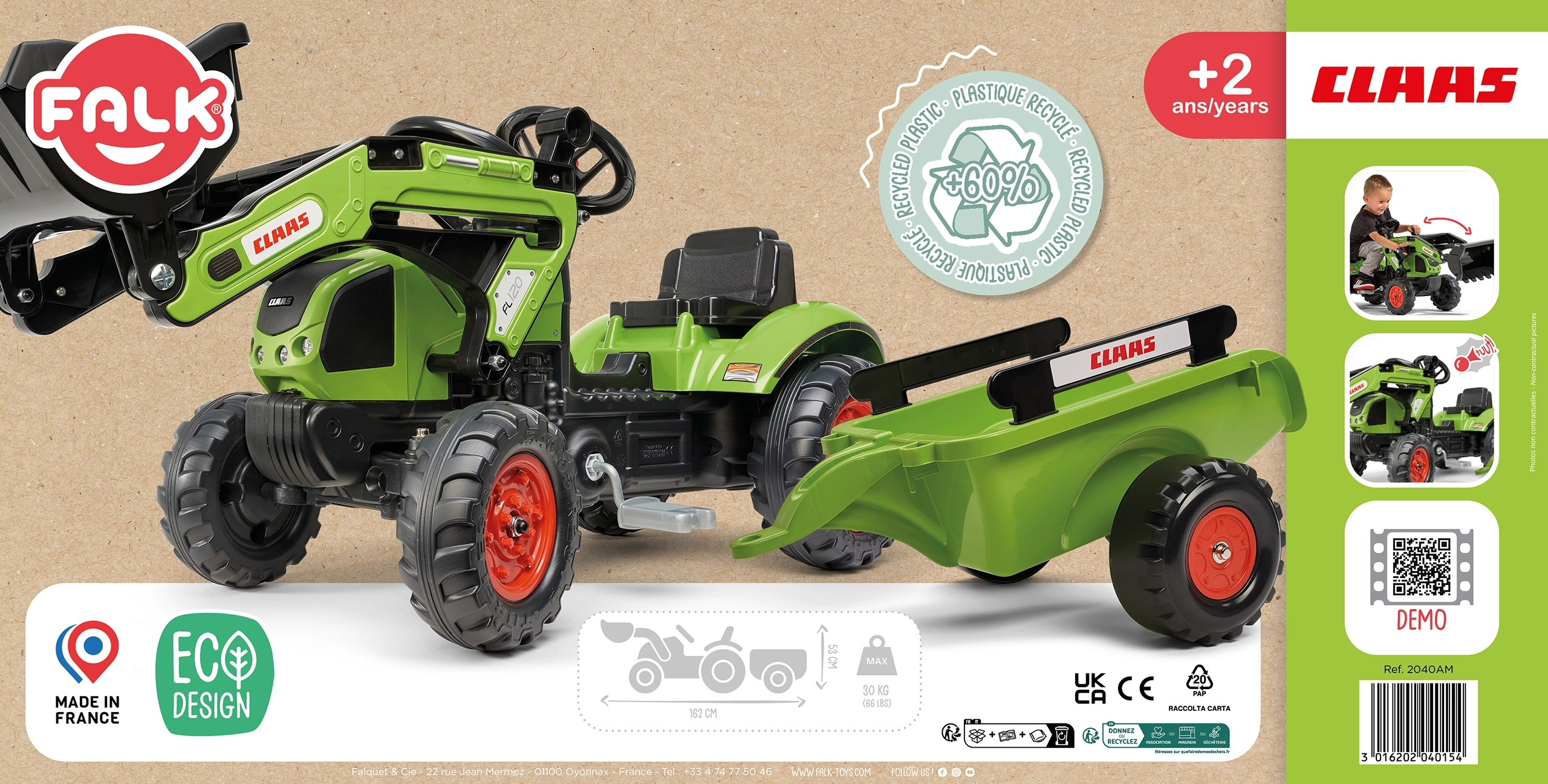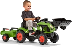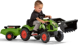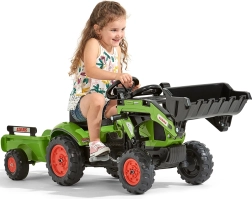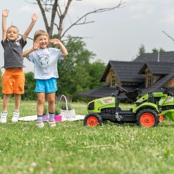 Entdecken Sie den realistischen Trettraktor CLAAS für kleine Landwirte. Sorgfältige Verarbeitung, robuste Materialien und durchdachte Details fördern die Motorik, Kreativität und Selbstständigkeit der Kinder. Dank der beweglichen Frontschaufel können Kinder Material aufnehmen und transportieren, während der Anhänger zusätzlichen Stauraum bietet.