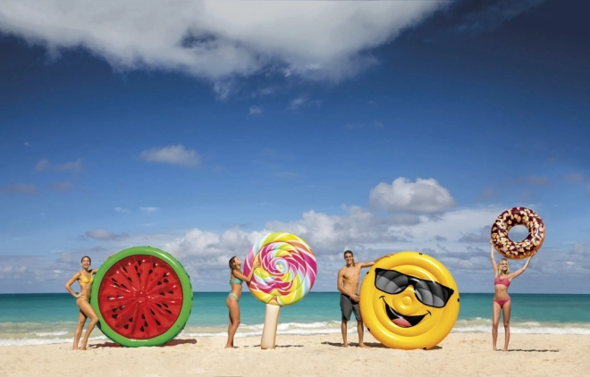 Genießen Sie entspannte Zeiten auf dem Wasser mit unserer aufblasbaren Liege in Lutscherform. Dieses stilvolle und farbenfrohe Accessoire ist ideal für Entspannung und Spaß, nicht nur im Gartenpool, sondern auch am Strand.