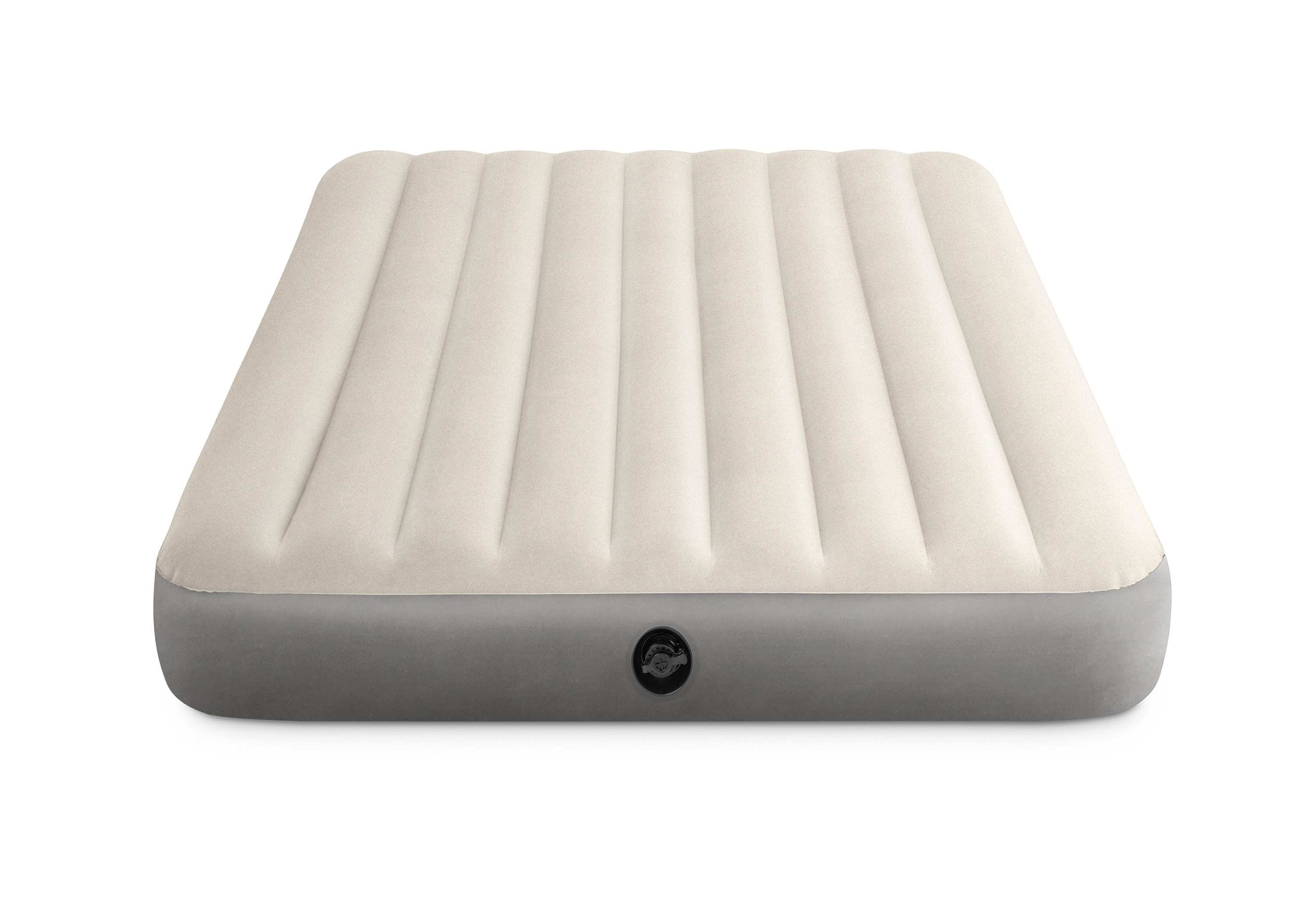 Die aufblasbare Matratze INTEX bietet bequemes und stabiles Liegen für zwei Personen. Dank der wasserabweisenden Velours-Oberfläche ist sie angenehm im Griff und rutschfest, während strapazierfähiges PVC eine lange Lebensdauer zu Hause und unterwegs sicherstellt.