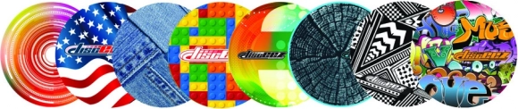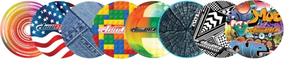 Jede Disceez-Scheibe ist mit einzigartigen grafischen Mustern verziert, die sofort ins Auge fallen.