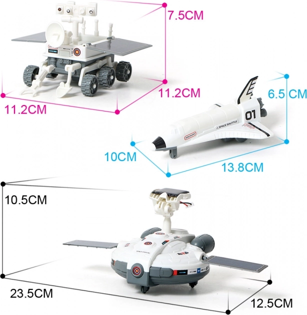 • 3 Modelle in 1 – Space Shuttle, Lunar-Rover, Raumstation.