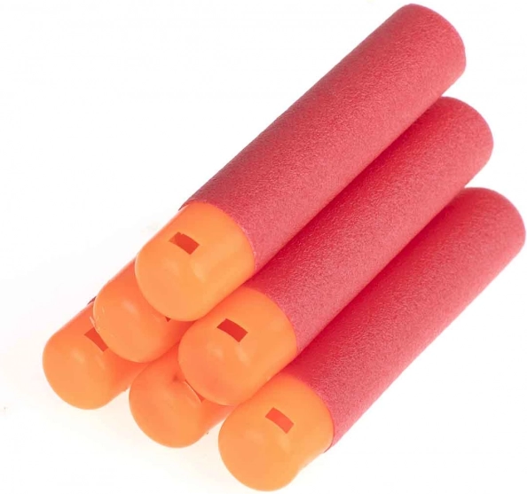Schaumstoff-Munition! Jeder echte Kämpfer braucht auch seine Waffe. Hast du genug Munition? Das Set enthält 6 Patronen. Hergestellt aus weichem Schaumstoff, daher ist das Spielen mit diesen Patronen absolut sicher.