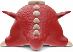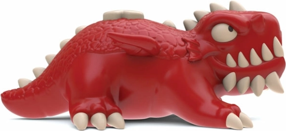 Der Drache ist mit viel Liebe zum Detail gestaltet, einschließlich großer Augen, scharfer Zähne und einer strukturierten Oberfläche.