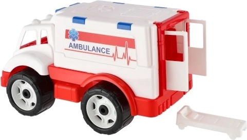 Dieser Kunststoff-Krankenwagen von TEKHNOK bildet ein echtes Einsatzfahrzeug detailgetreu nach und bietet Kindern authentische Spielsituationen. Dank der aufklappbaren Türen und der Patiententrage können kleine Retter dramatische Einsätze nachspielen und Zusammenarbeit sowie Empathie üben.