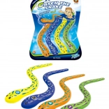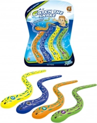 Gelbe, blaue, orangefarbene und grüne Schlange sind im Wasser sehr gut sichtbar, sodass Kinder sie schnell finden und das Spiel Tempo bekommt.