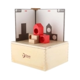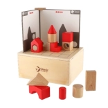 Das Set ist für Kinder ab 3 Jahren konzipiert und alle Teile sind sicher in einer Holzkiste mit den Maßen 18,5 x 16 x 9 cm verstaut. Kinder können versuchen, die Blöcke entsprechend den Karten zu stapeln und beide Seiten abzugleichen, wodurch sie Logik und Geschicklichkeit üben.