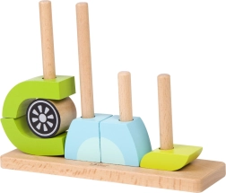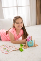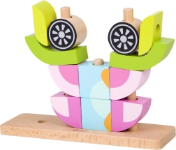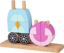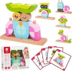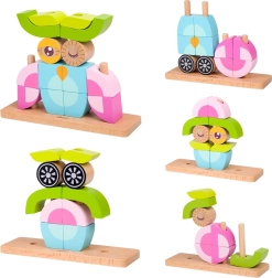 Dieses variable Holz‑Steckspiel begeistert kleine Baumeister und Tierliebhaber. Die Teile werden auf die Stifte der Holzbasis gesteckt und lassen sich zu einer Eule oder weiteren Formen kombinieren – so wächst das Spiel gemeinsam mit den Fähigkeiten des Kindes. Bildkarten mit Aufgaben bringen neue Ideen und machen aus jedem Aufbau eine kleine Herausforderung.